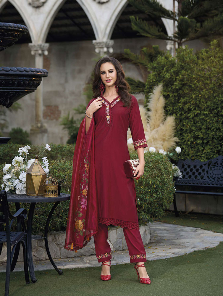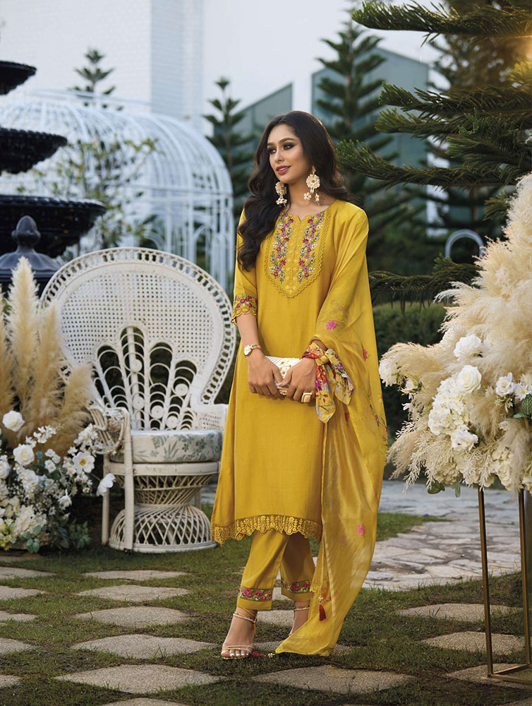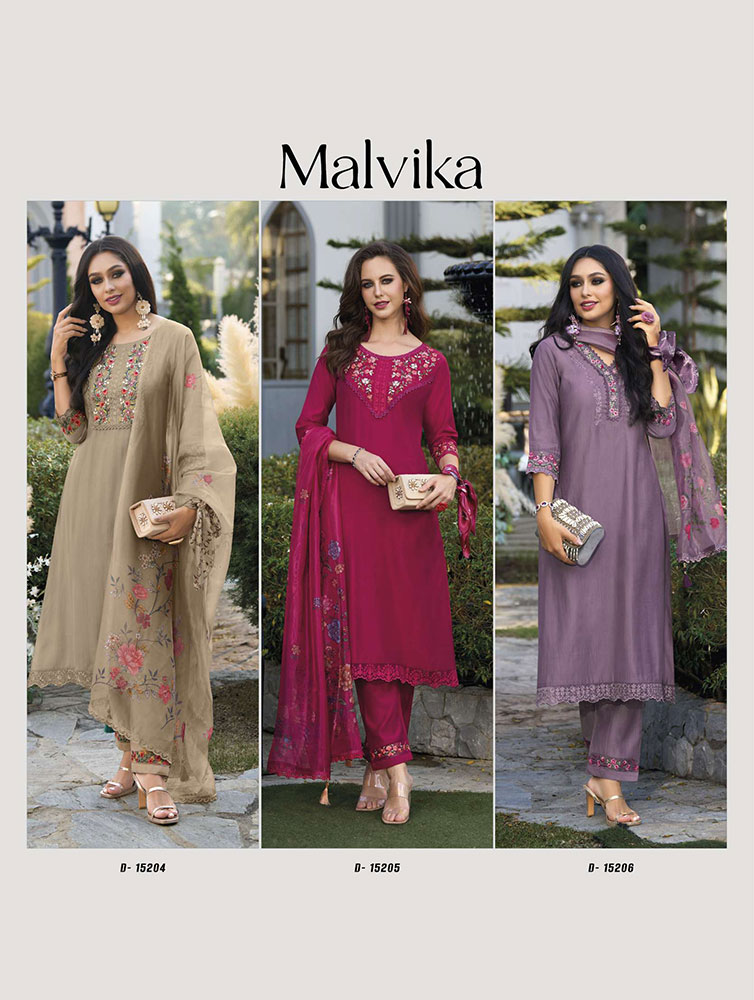 Malvika presents a melodic symphony of style, where every Salwar Suit echoes a distinctive rhythm of sophistication. Dive into a collection that captures the essence of modern elegance, adorned with exquisite details and designed for the woman who seeks to make a fashion statement.